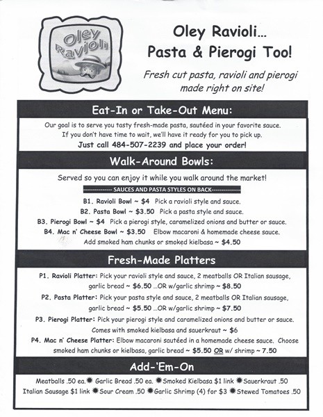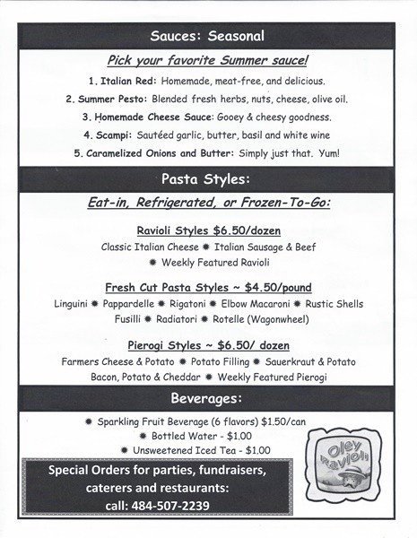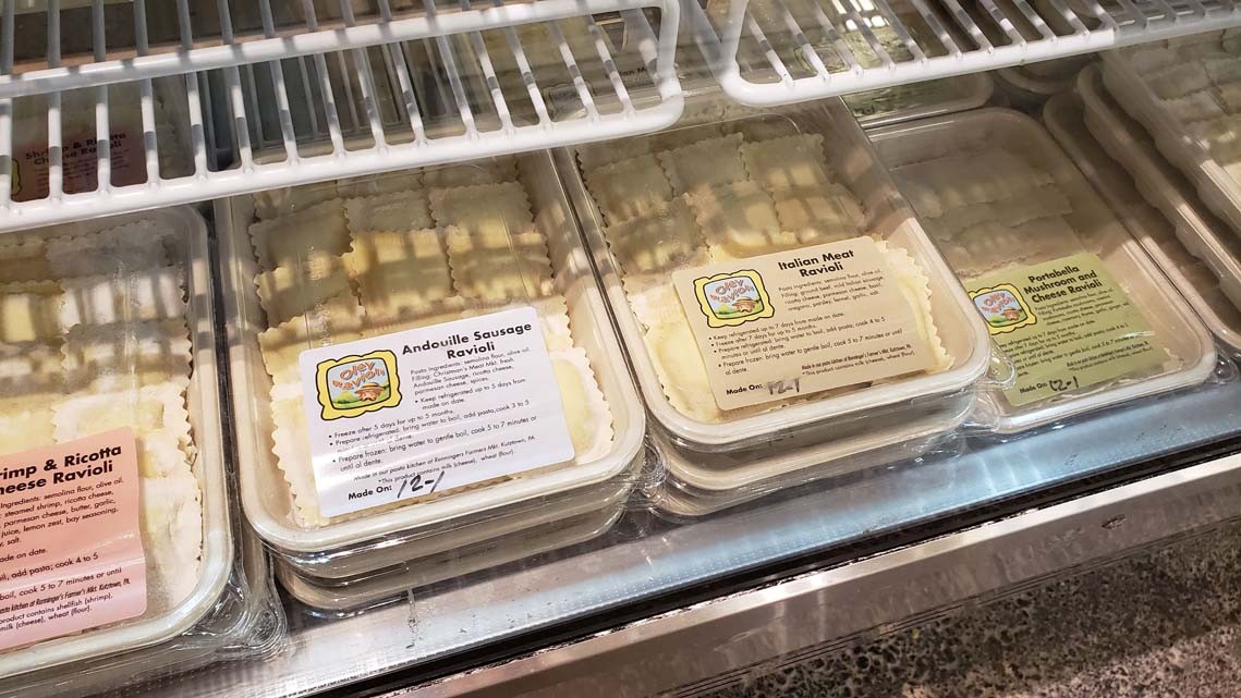 We produce fresh ravioli, pierogi, and pasta weekly. We have many different styles and locally source our ingredients. We also make several different types of fresh pasta salads and prepared meals including homemade lasagne and mac & cheese.
